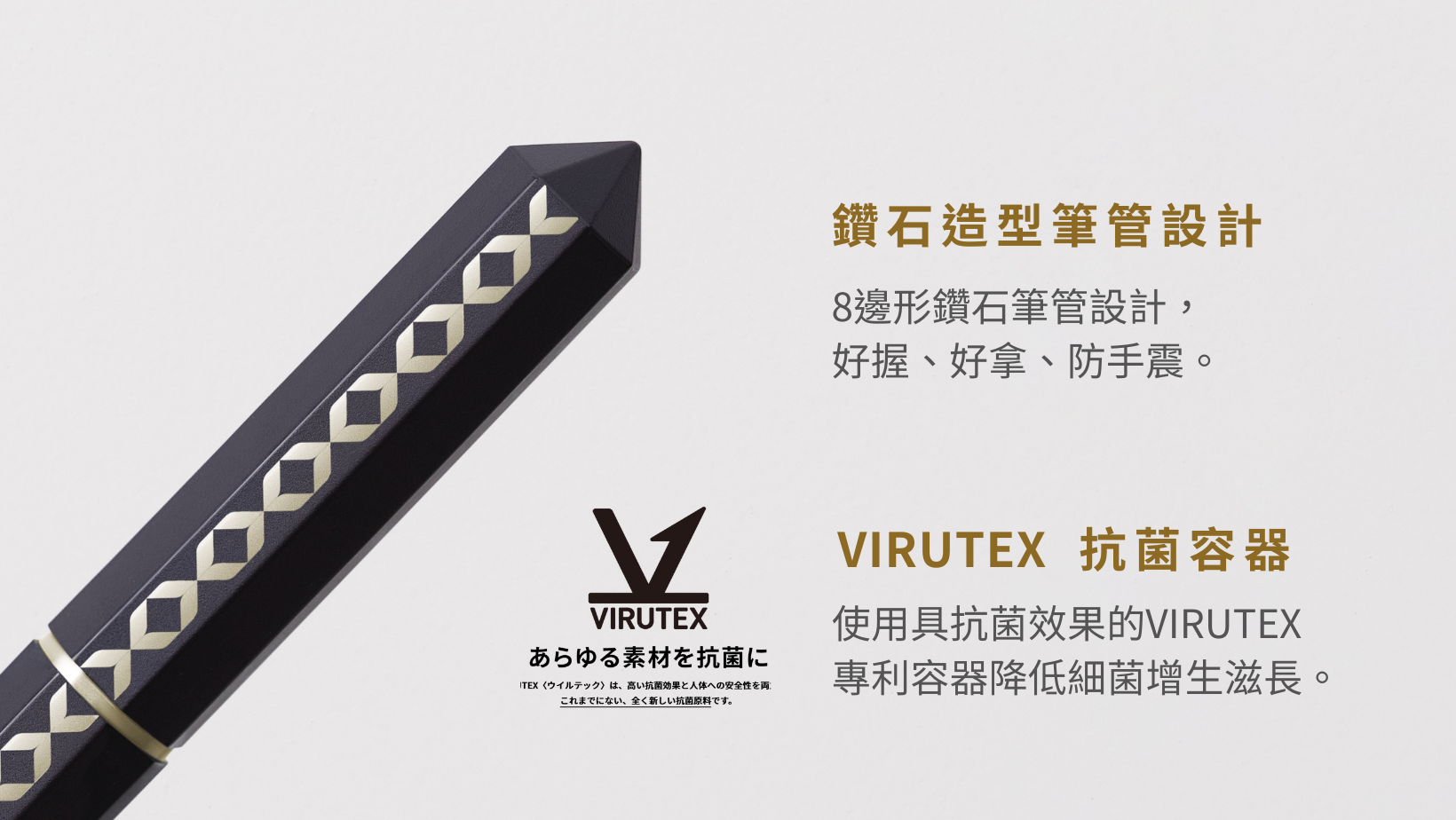 鑽石造型筆管設計-8邊鑽石筆管設計好握、好拿、防手震。